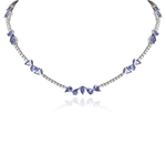 A dance of brilliance and depth, the Amelie Necklace celebrates the allure of pear-shaped tanzanite. Suspended in 14K gold, its velvety violet hues are heightened by a delicate halo of natural round brilliant diamonds. The necklace is a study in refined beauty—where each facet reflects both modern grace and timeless femininity.