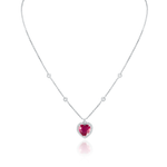 This necklace features a heart-shaped ruby pendant outlined with round diamonds. Set in 18K gold, itās a simple yet meaningful design that adds a touch of romance to everyday wear.