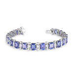 Emerald Cut Tanzanite Tennis Bracelet With Natural Round Brilliant Diamond and Baguette Diamond Set in 14 Karat Gold