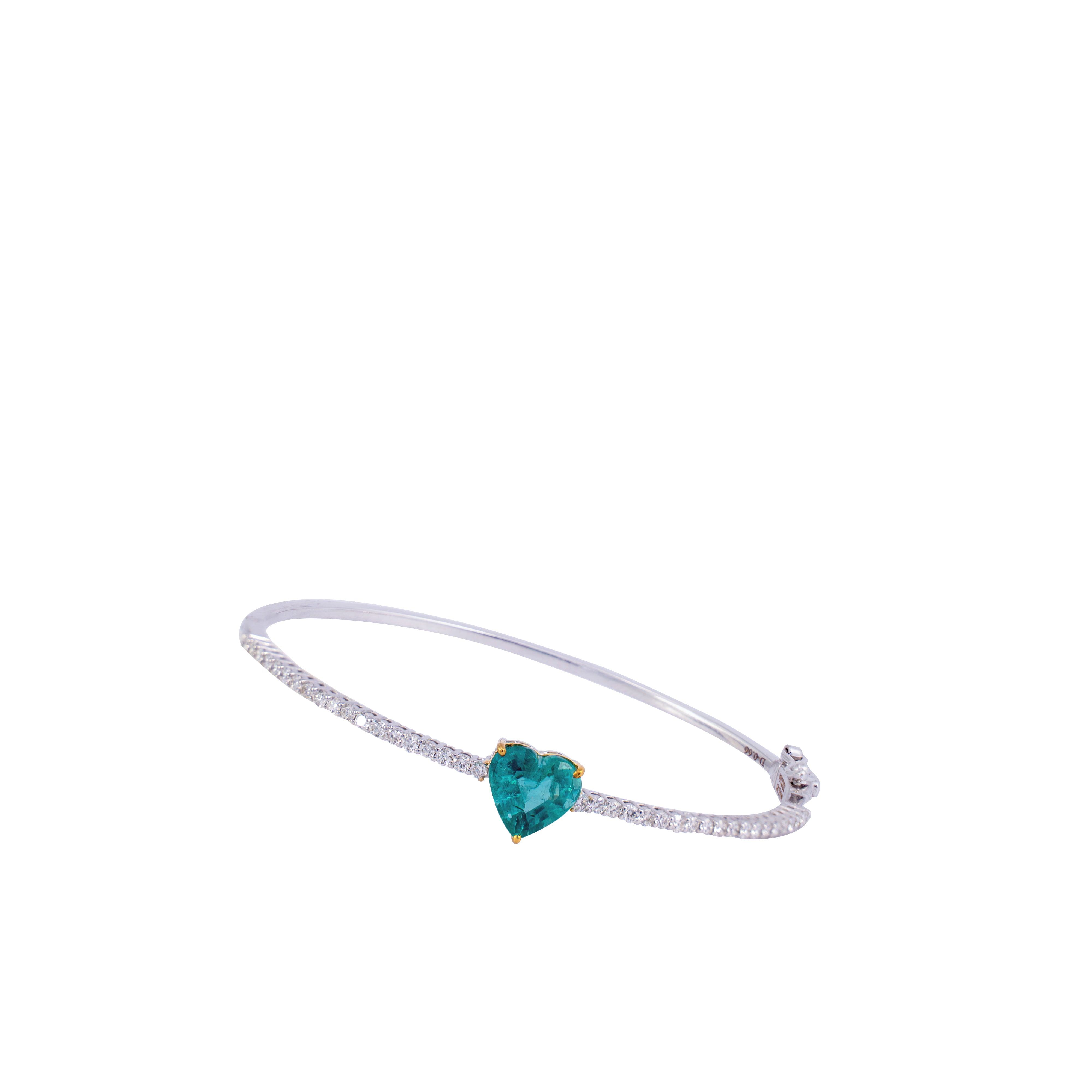 Diamond Bracelet With Heart Shape Zambian Emerald