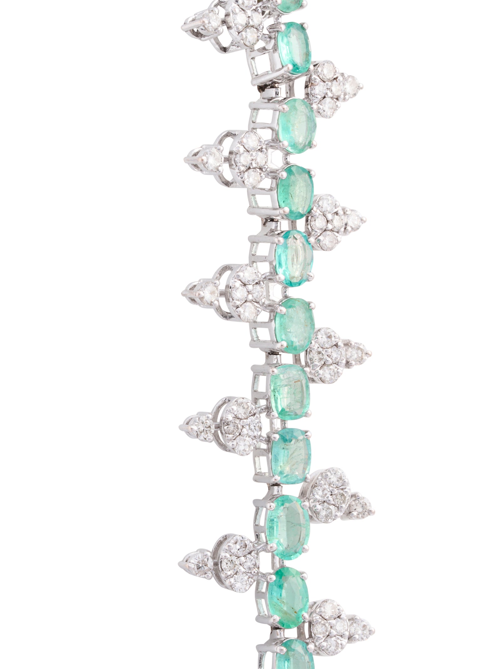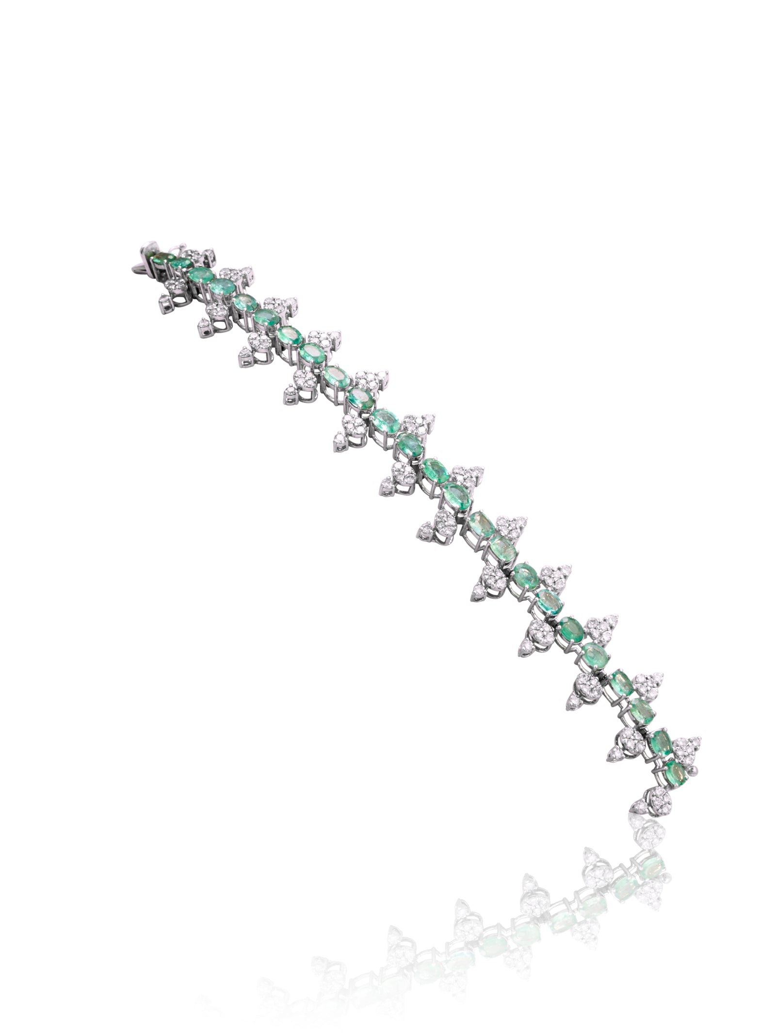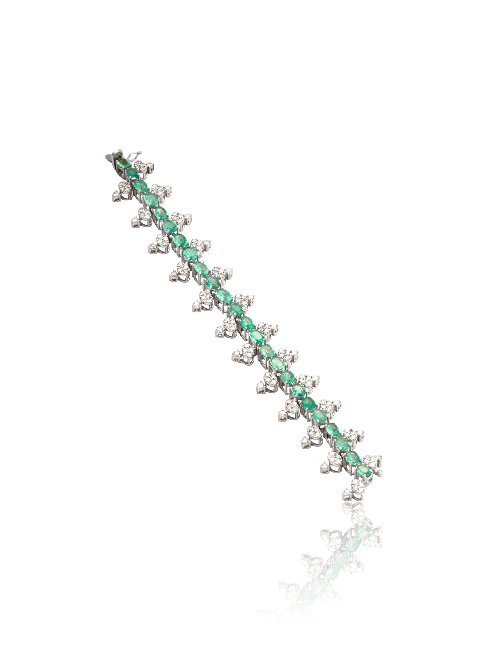 An understated masterpiece, this Zambian oval emerald and Round brilliant-cut diamonds bracelet blends subtle luxury with effortless charm.