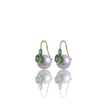Pear Shape Zambian Emerald Wire Earrings with Round Brilliant Diamond and Pearls