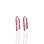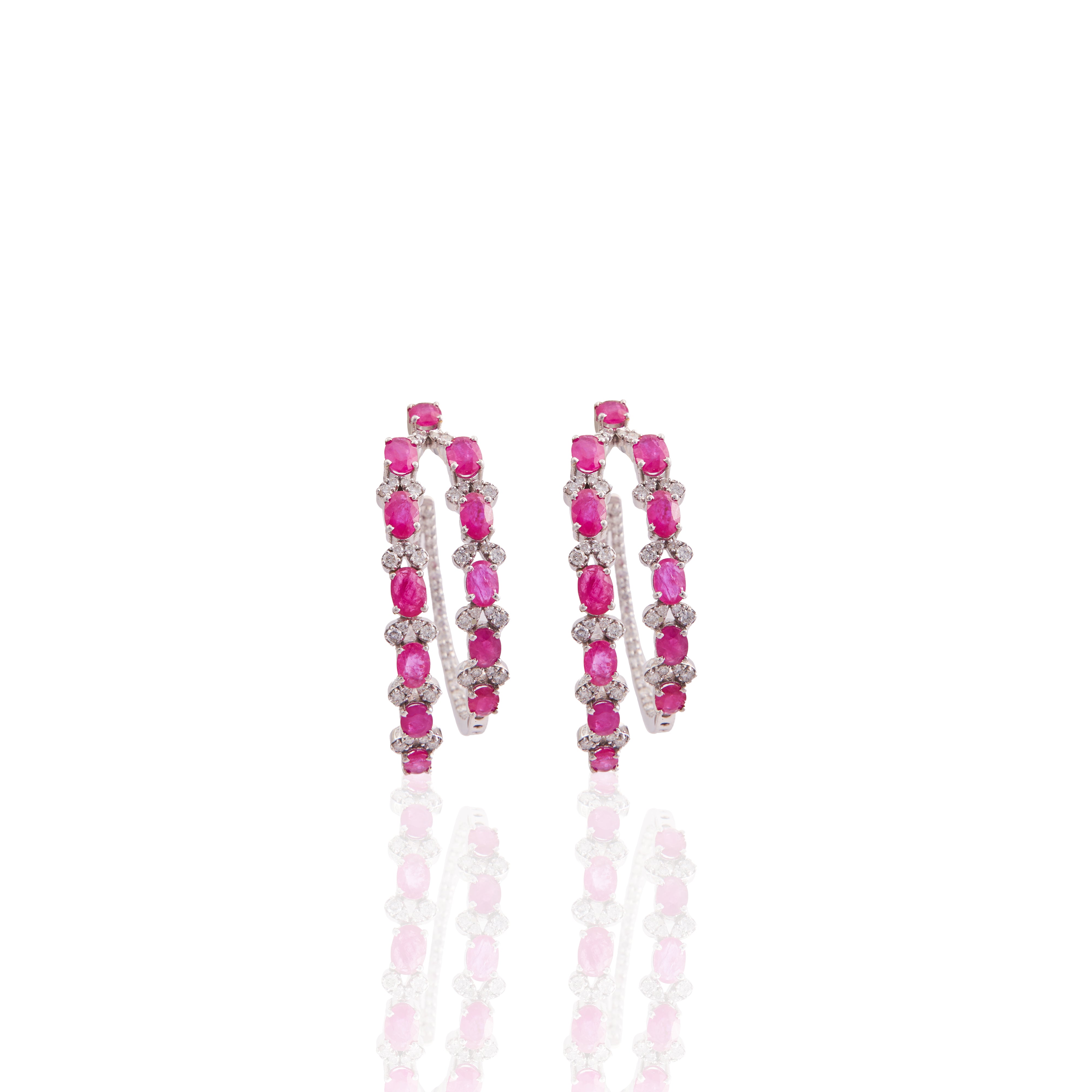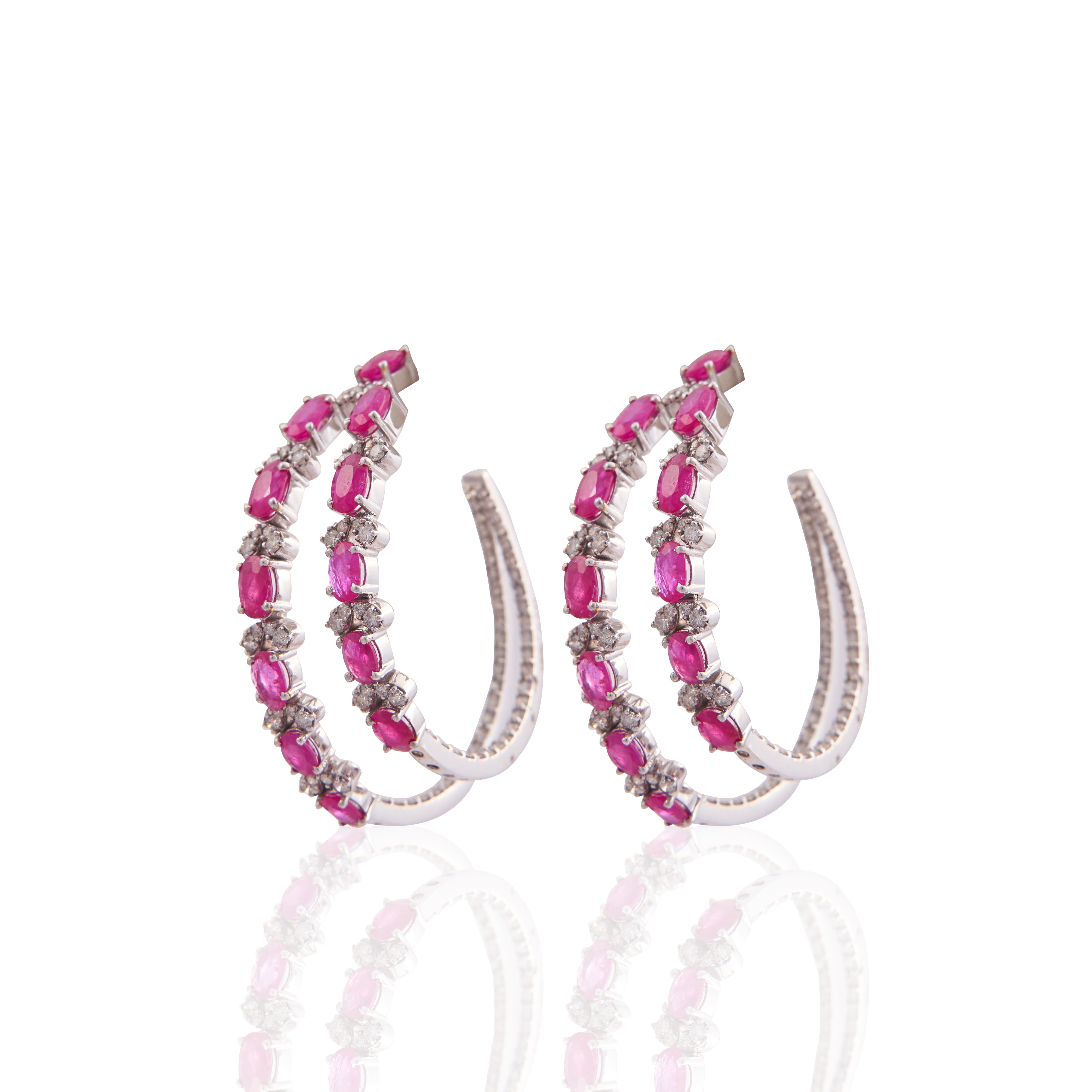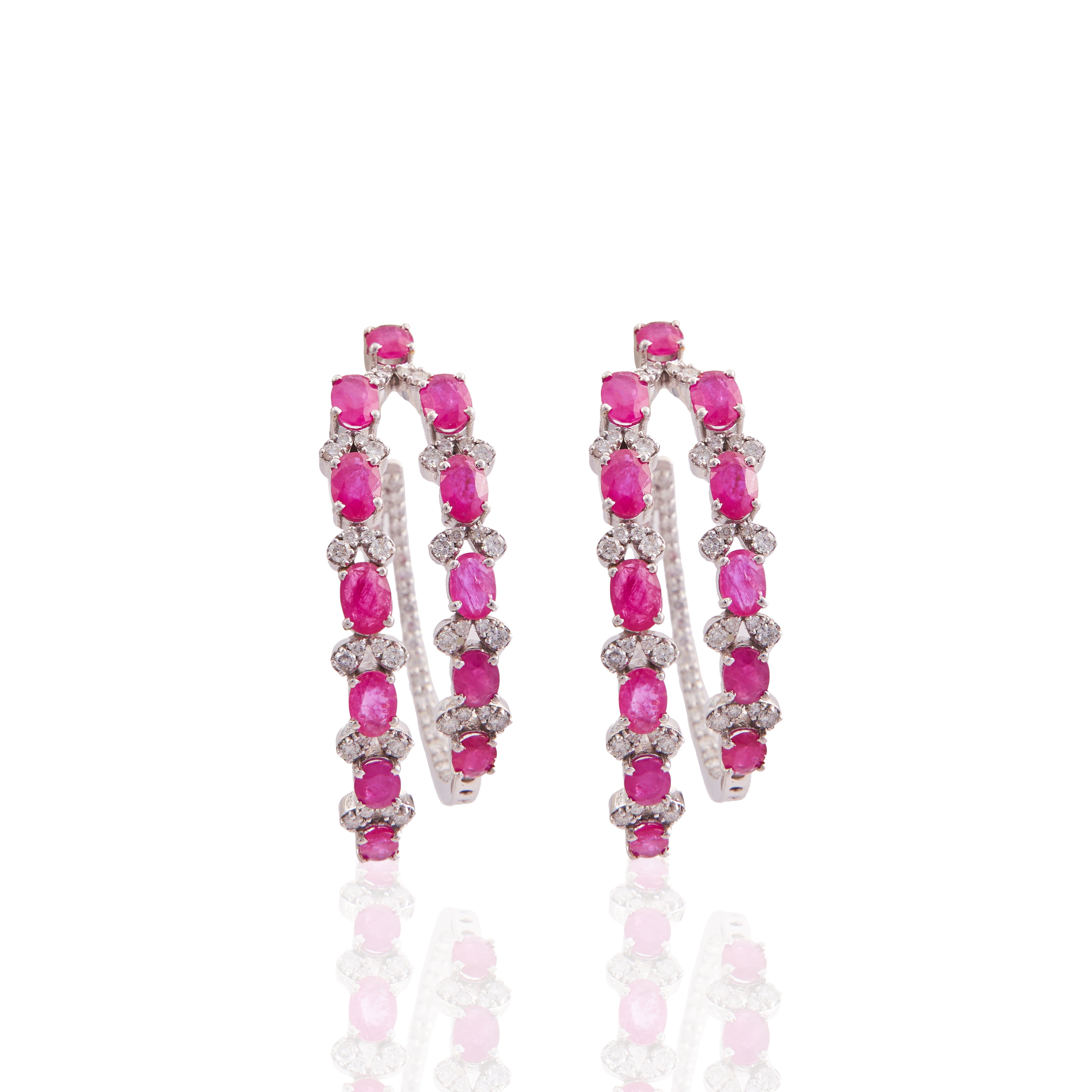 Sourced for their exquisite hues and intense clarity, discover the allure of Mozambique rubies, paired with the brilliance of round cut diamonds in these oval hoop earrings that radiate splendour and an iconic grace.