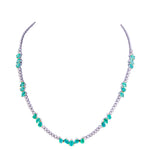 Featuring our diamond string necklace handcrafted in 14k gold with round brilliant cut diamonds and pear shape emeralds