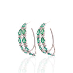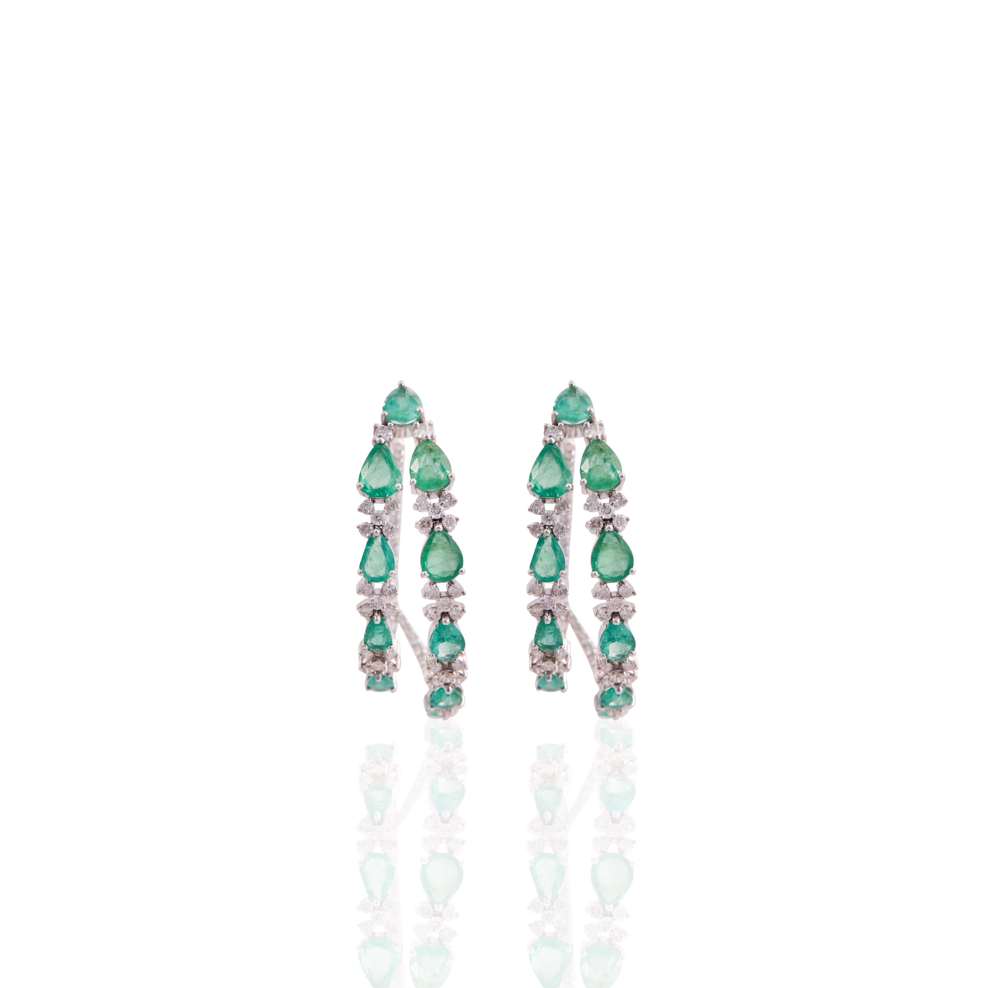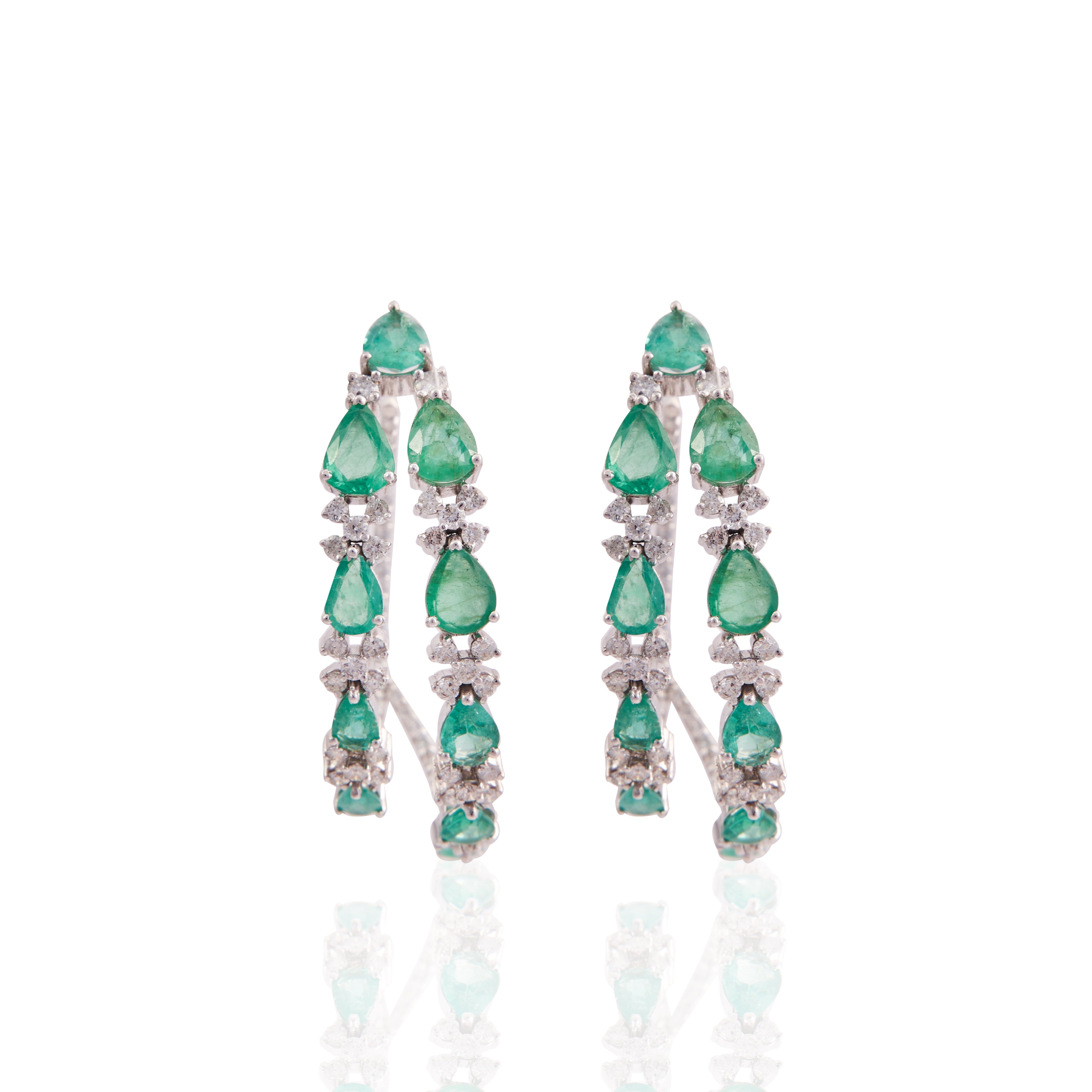 Pear Shape Zambian Emerald Hoops with Round Brilliant Cut Diamonds