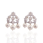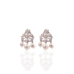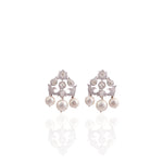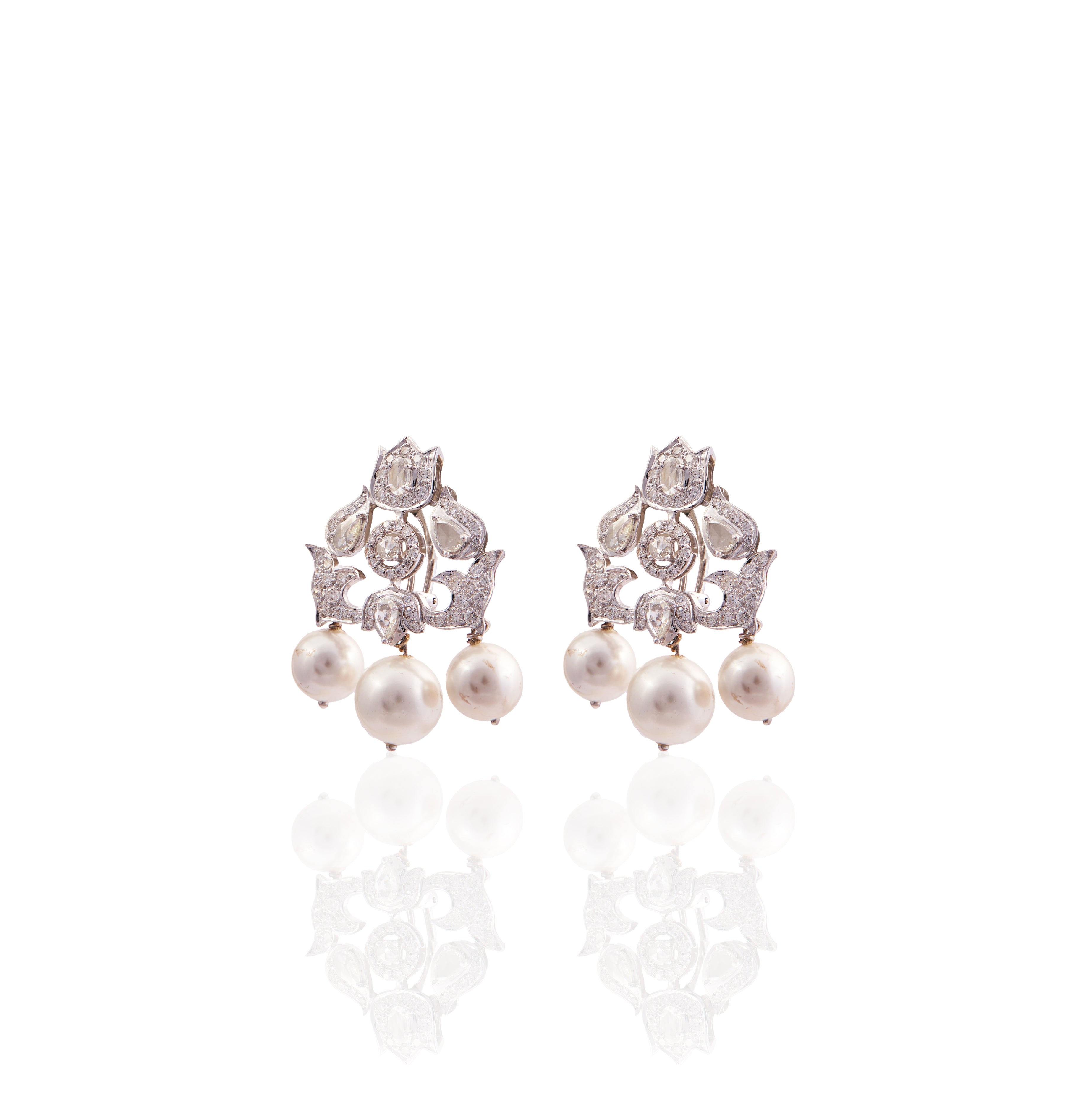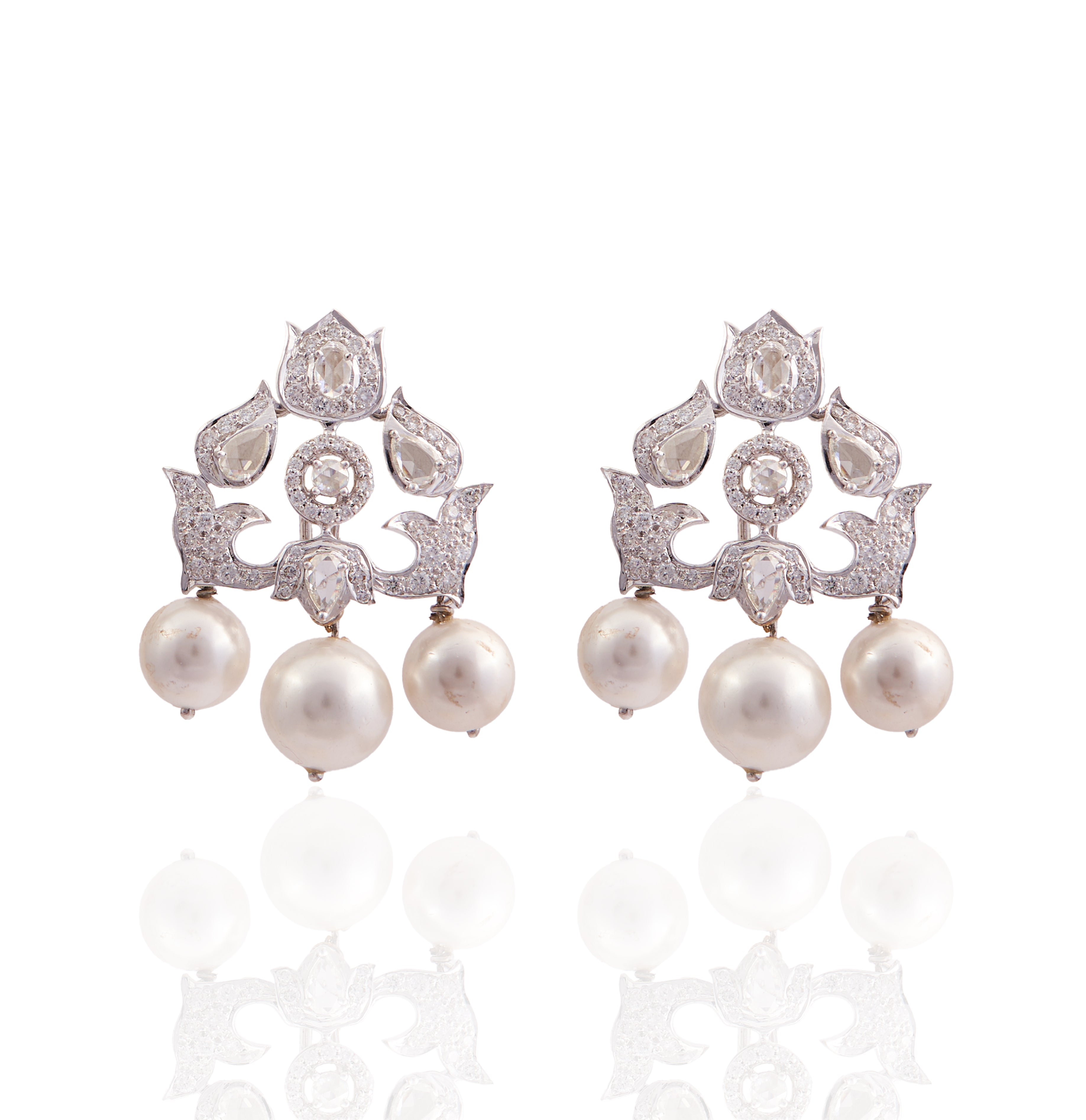 Pearl Earrings with Fancy Rose Cut and Round Brilliant Cut Diamonds