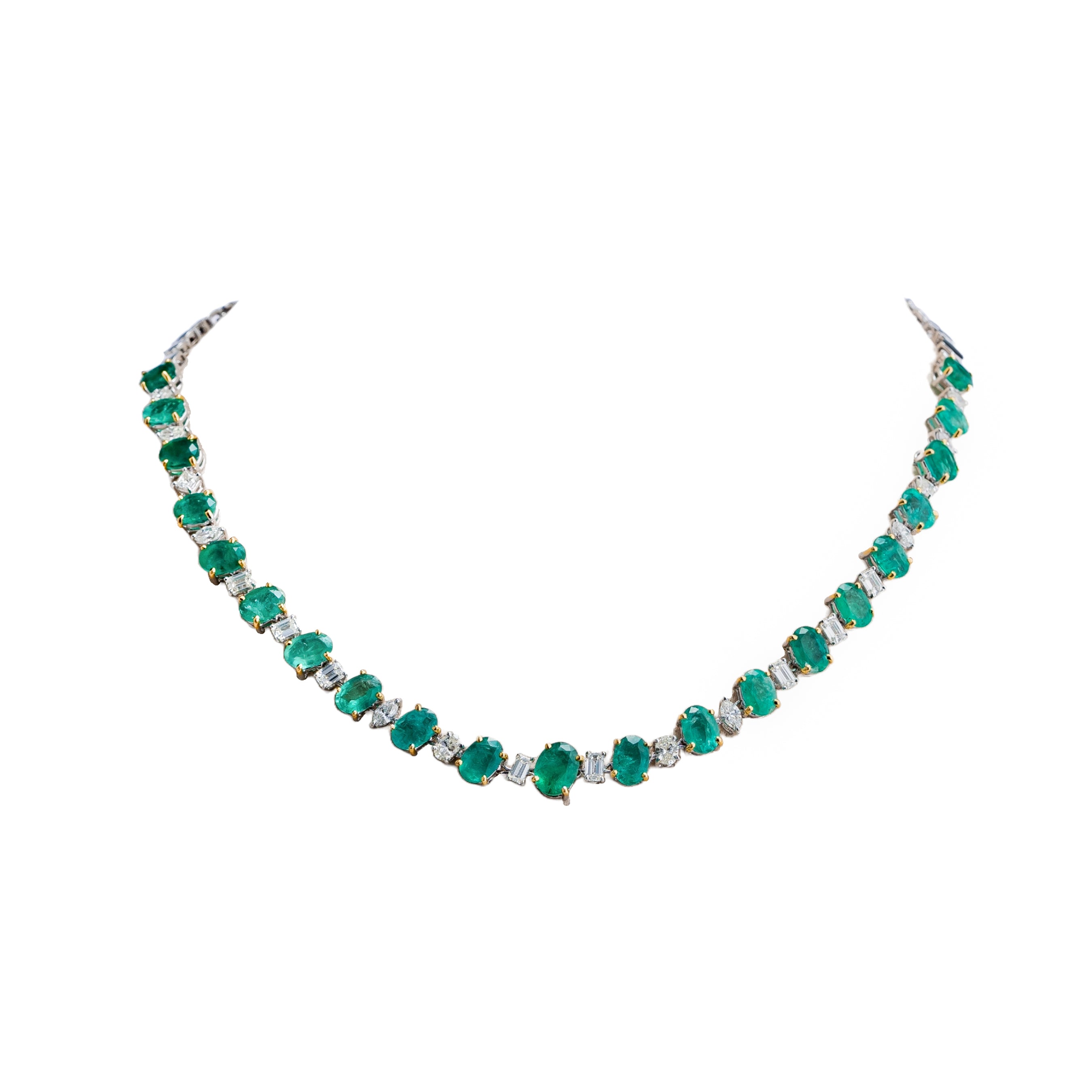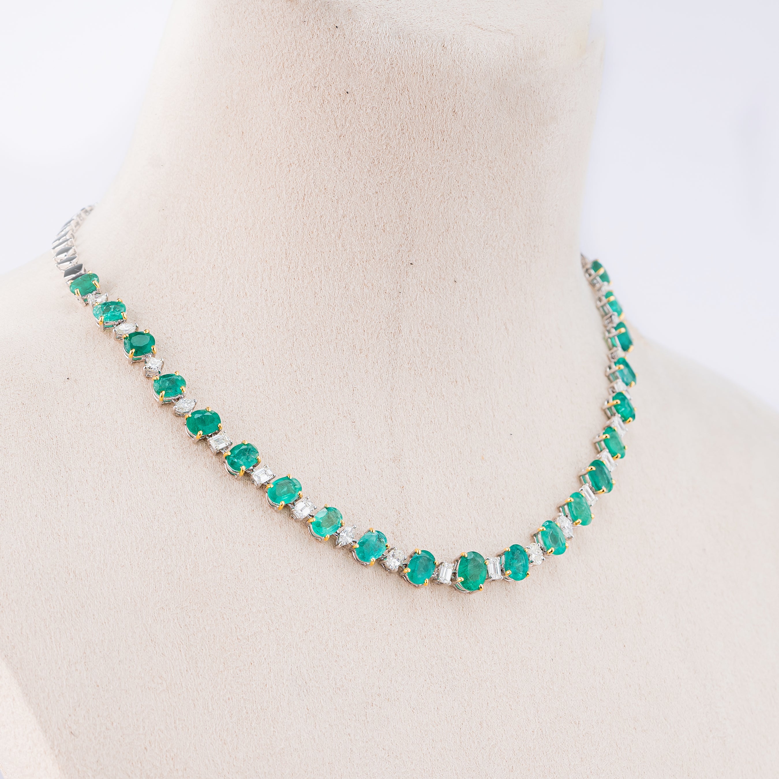 FANCY SHAPE DIAMOND NECKLACE WITH ZAMBIAN EMERALDS DIAMOND POINTERS RANGING 10 TO 20 EACH