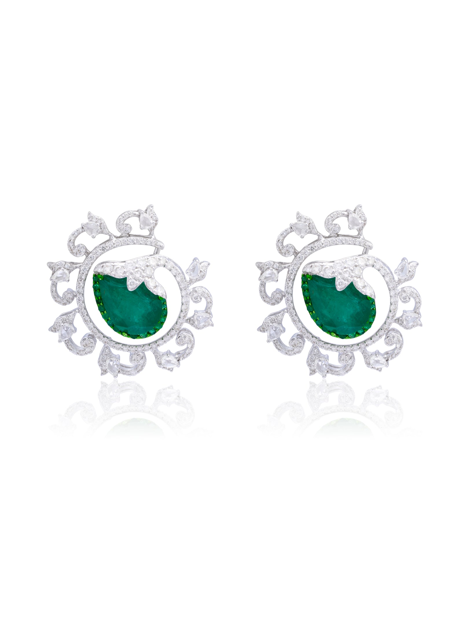 A stunning combination of Zambian pear and round emeralds, pear rosecut diamonds and round brilliant cut diamonds, these earrings radiate elegance and vibrant sophistication.