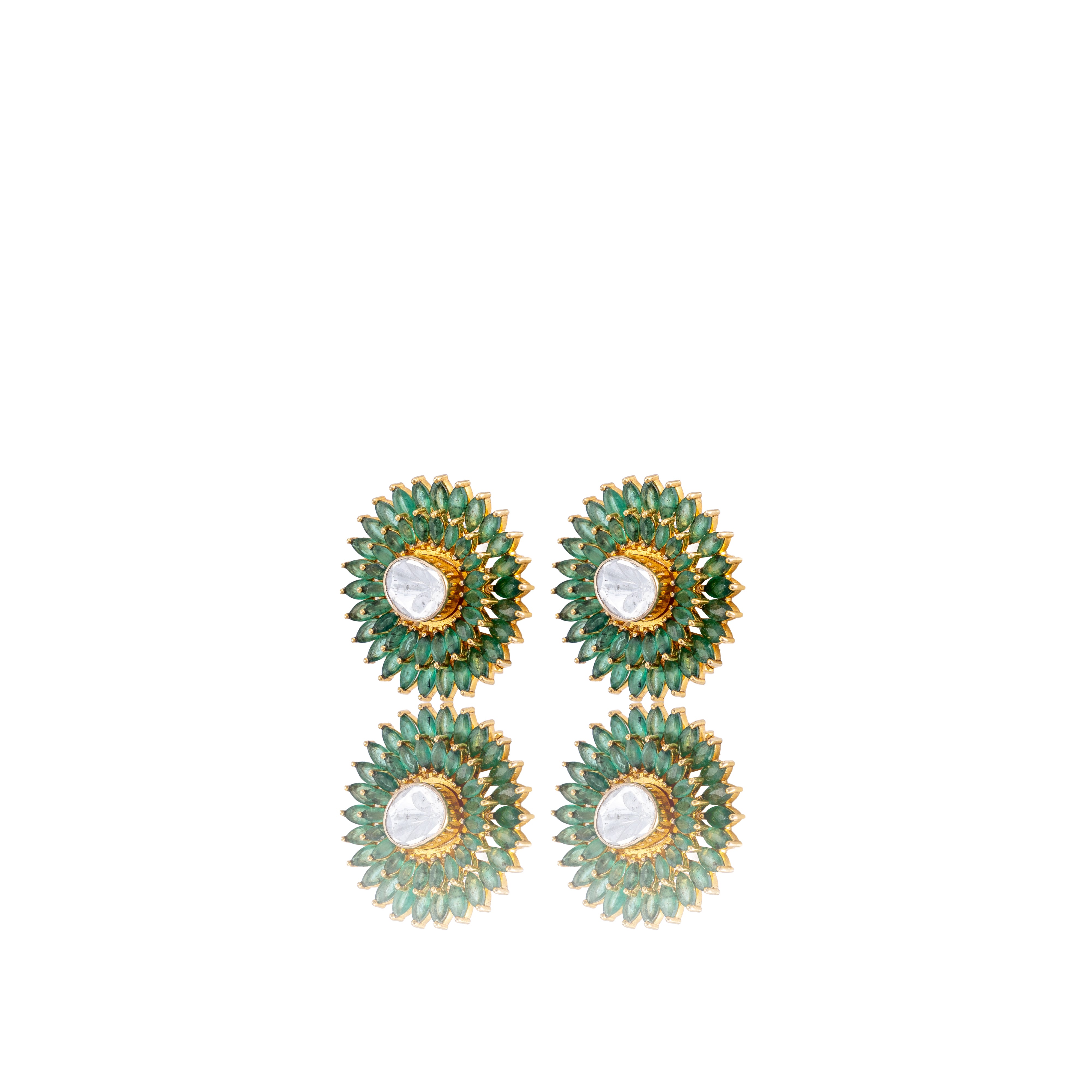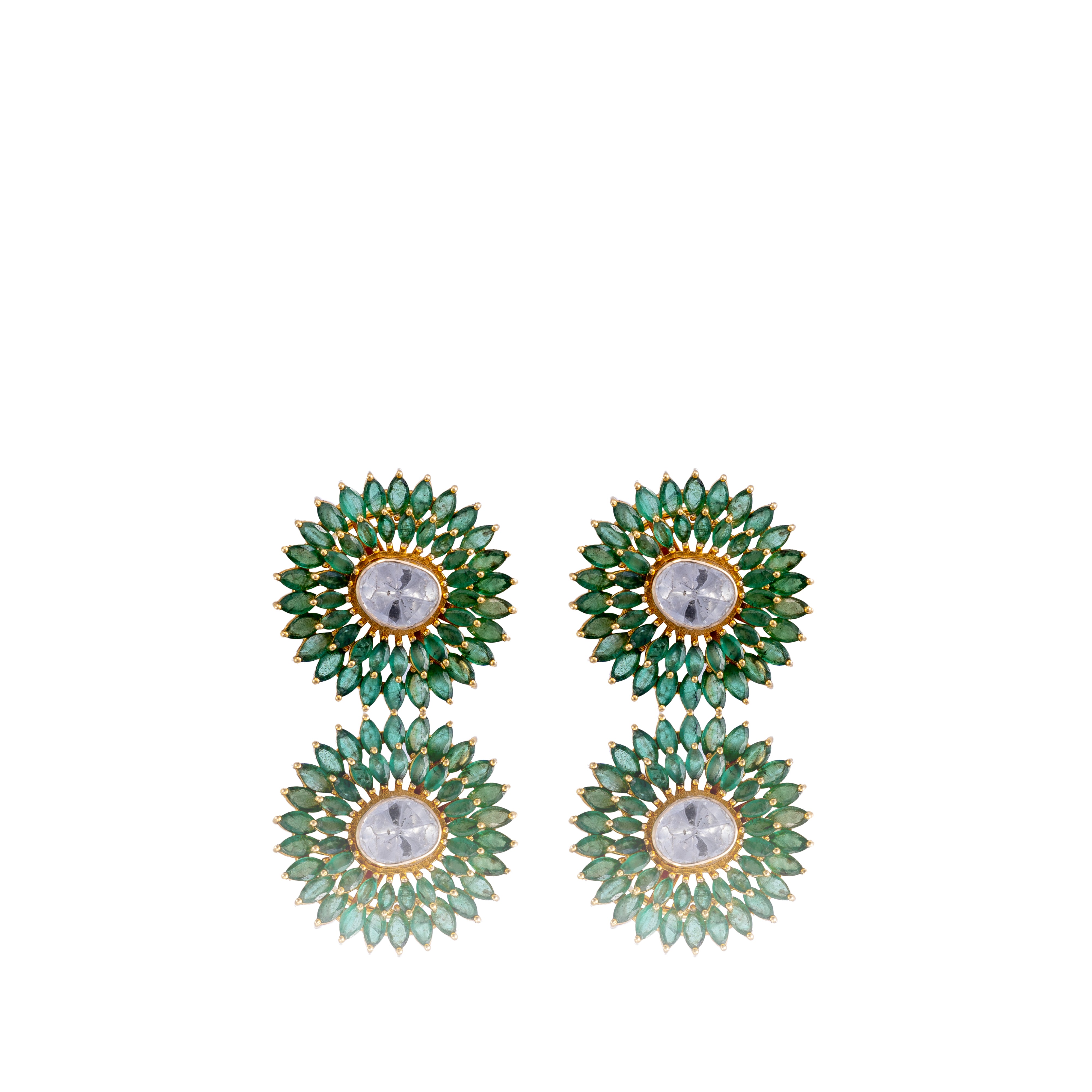 Diamond Polki Earrings with Markeys Shape Zambian Emeralds