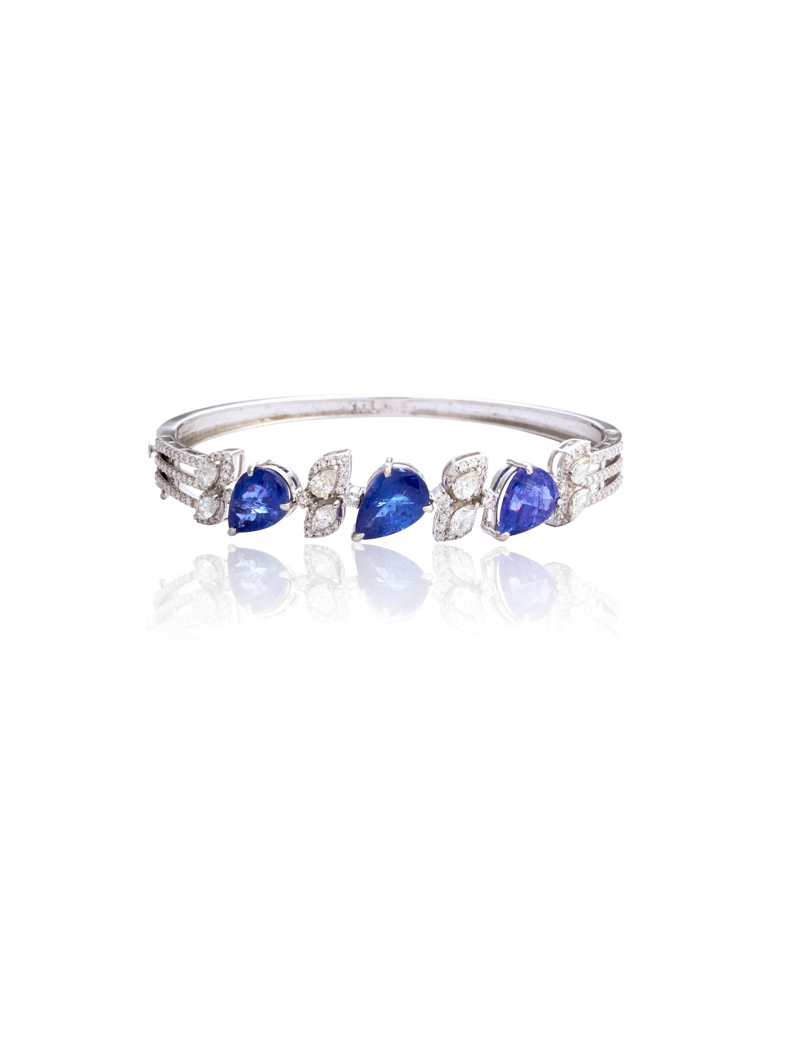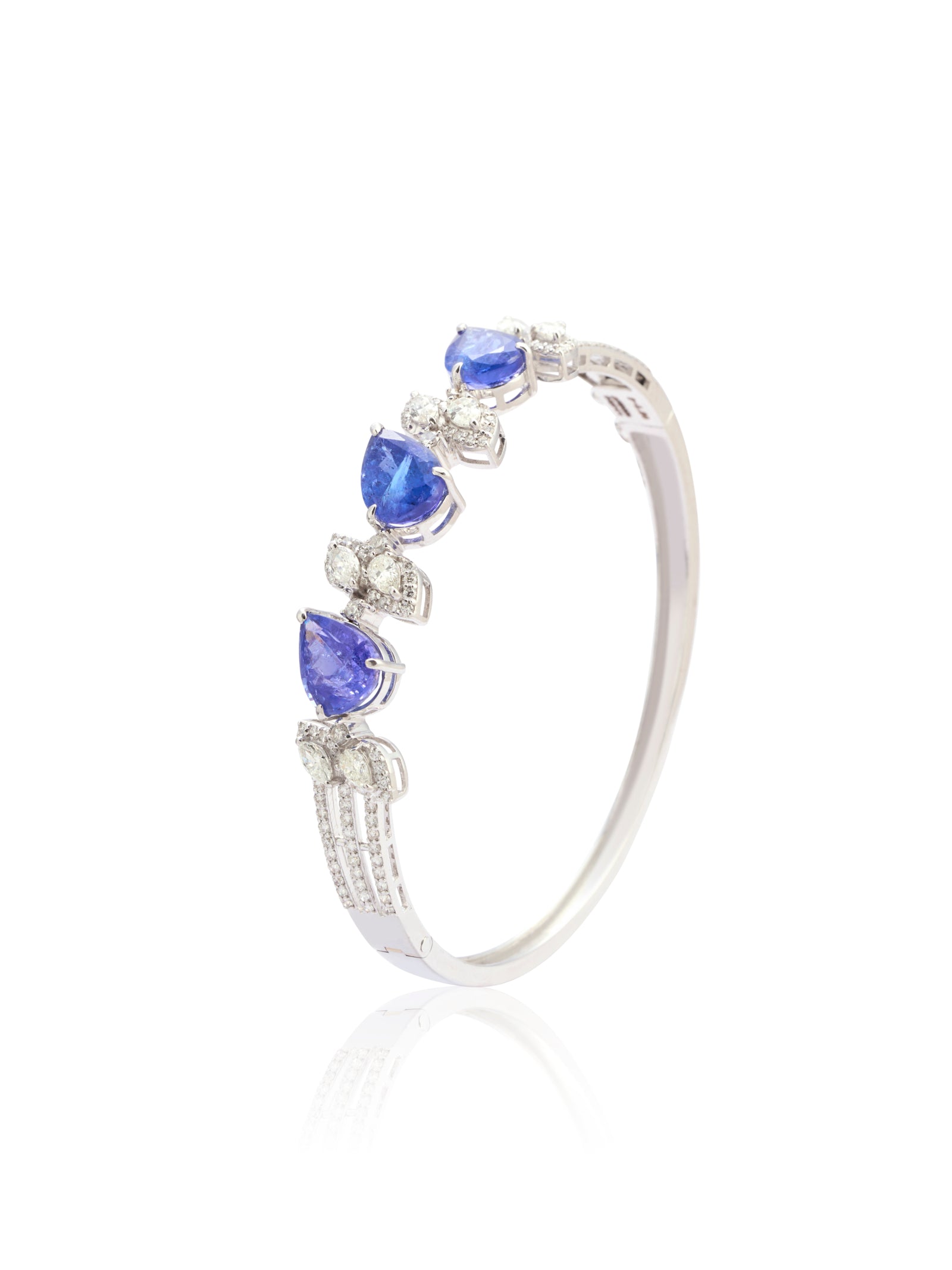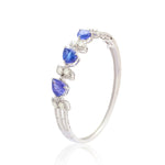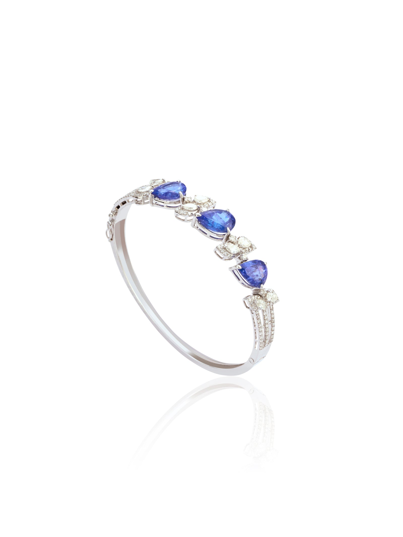 A dazzling display of colour and brilliance, this bangle features pear tanzanites, pear and marquise shaped diamonds and Round brilliant cut diamonds, creating a harmonious dance of light.