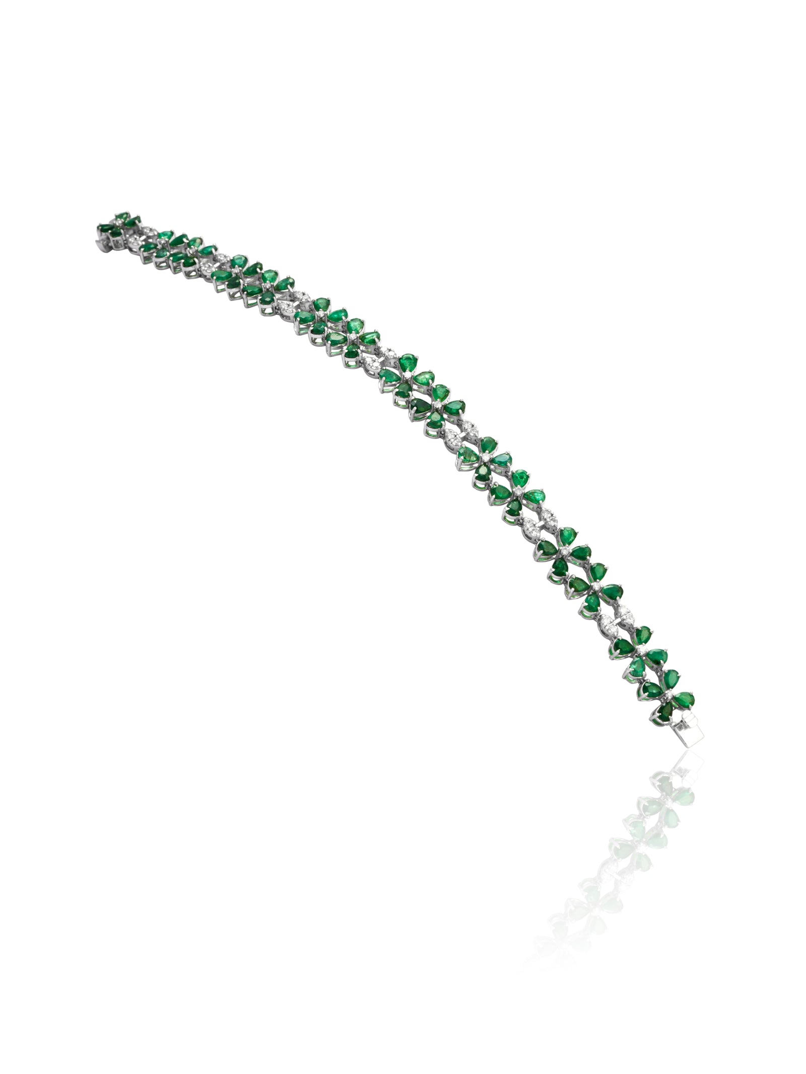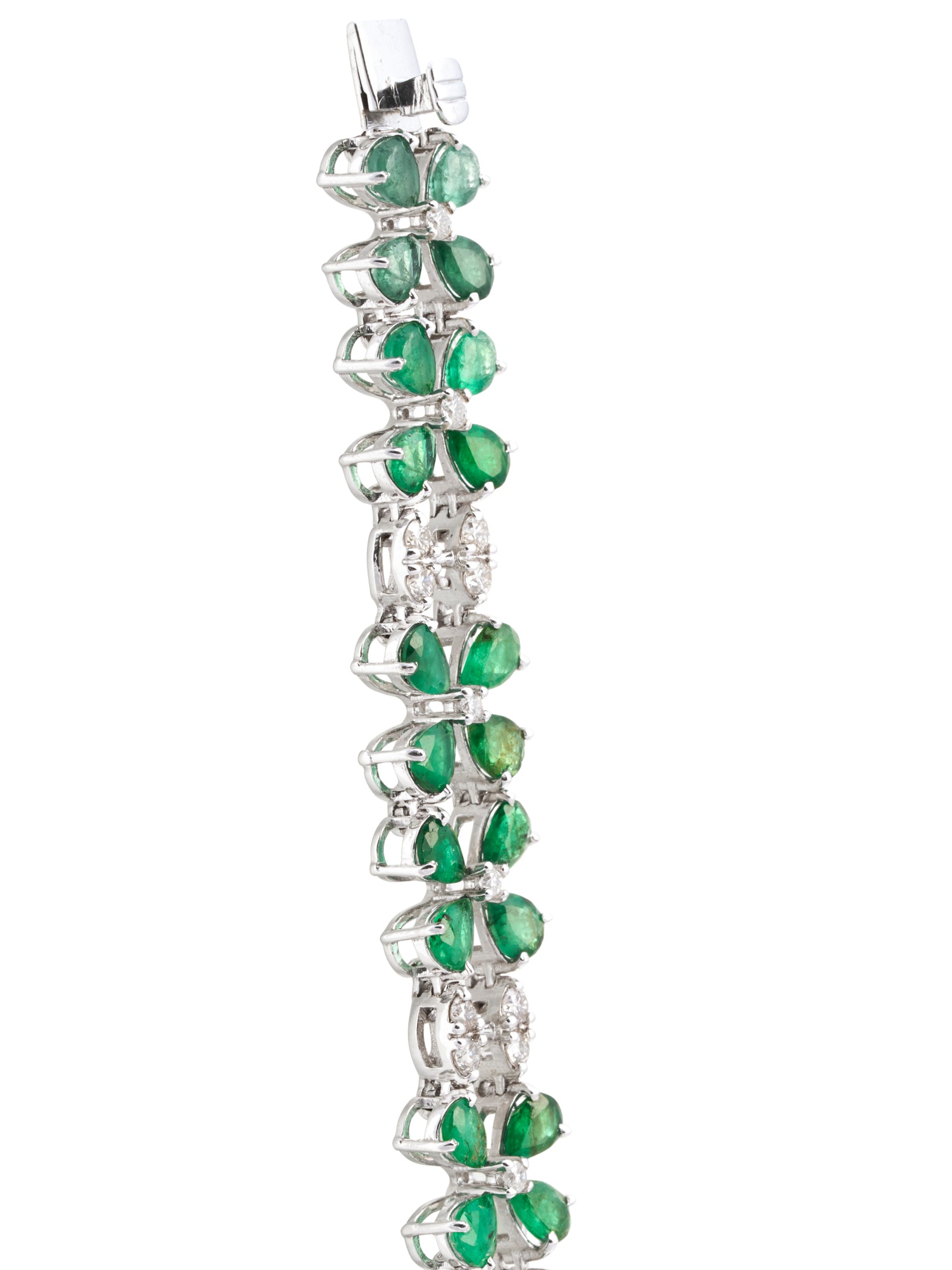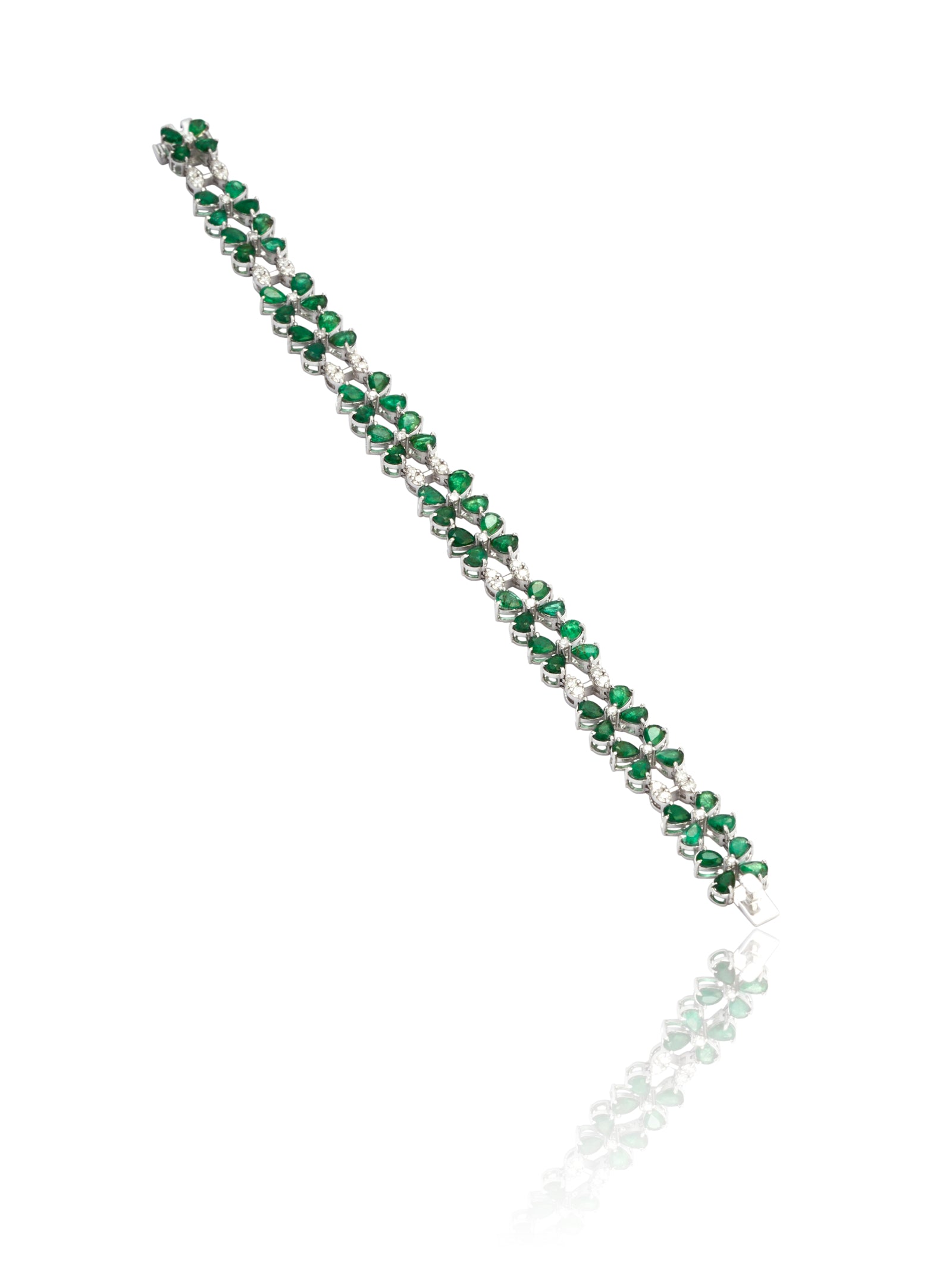 A graceful design, this delicate bracelet combines Zambian pear-shaped emeralds and Round brilliant-cut diamonds for subtle yet captivating charm.