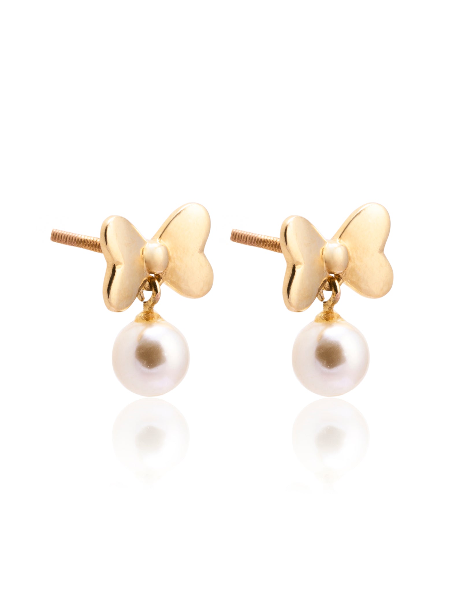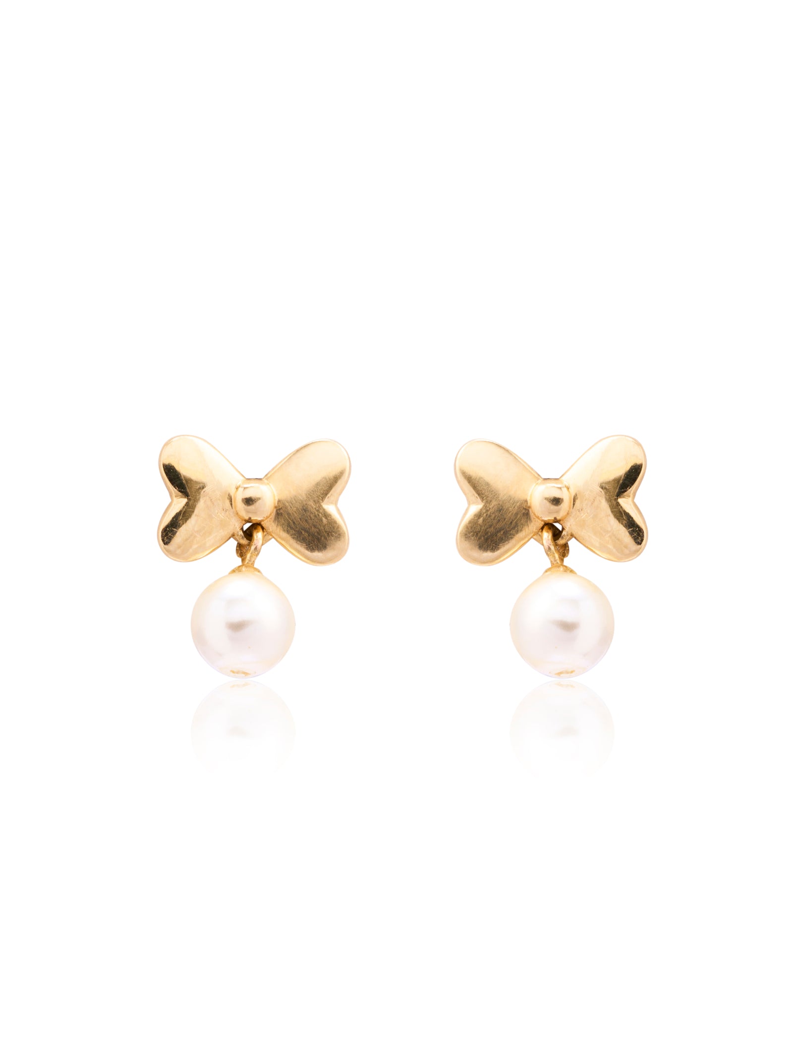 A perfect blend of soft pearls and gleaming gold, these bow-shaped baby drop earrings are a playful yet classic addition to your little one’s collection.
