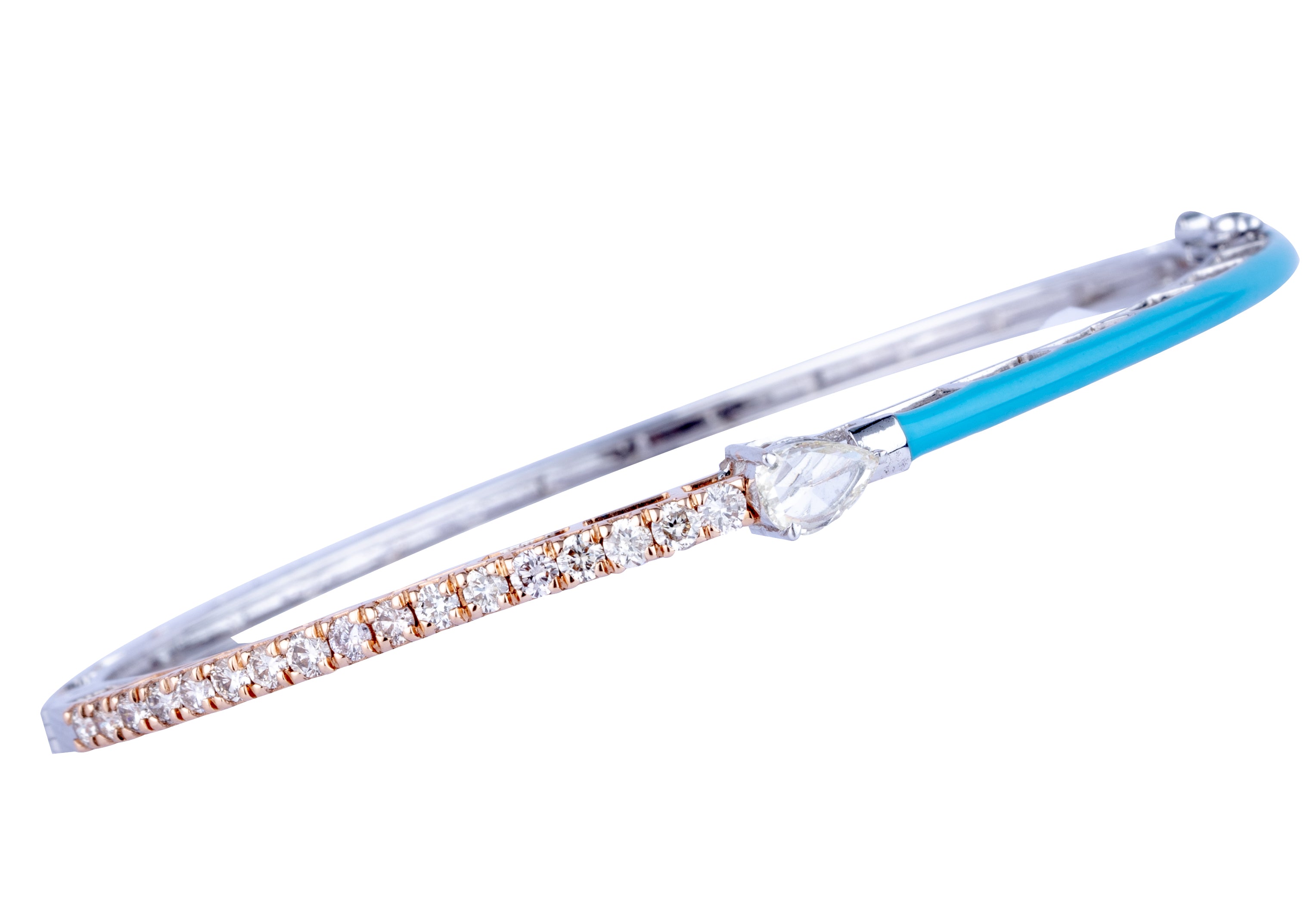 FANCY ROSE CUT DIAMOND AND ROUND DIAMOND BRACELET WITH BLUE CERAMIC